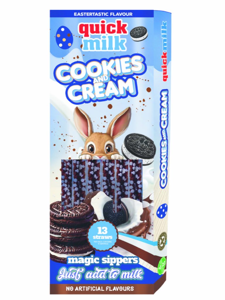 Easter 2026 is shaping up to be extra special with the launch of two brand new irresistible new Quick Milk Straw flavours; Creamy Caramel and Cookies & Cream (below).