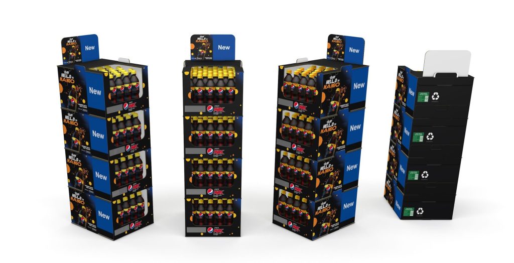 For instance, when Pepsi launched an exciting new Mango flavour to its existing range of Pepsi MAX drinks, DS Smith was tasked with designing an attention-grabbing display which would tempt shoppers to give it a try. By using the contrast of Pepsi’s brand colours against sprinkles of bright yellow, the unit embodied the refreshing flavour and grabbed busy shoppers’ attention (below).