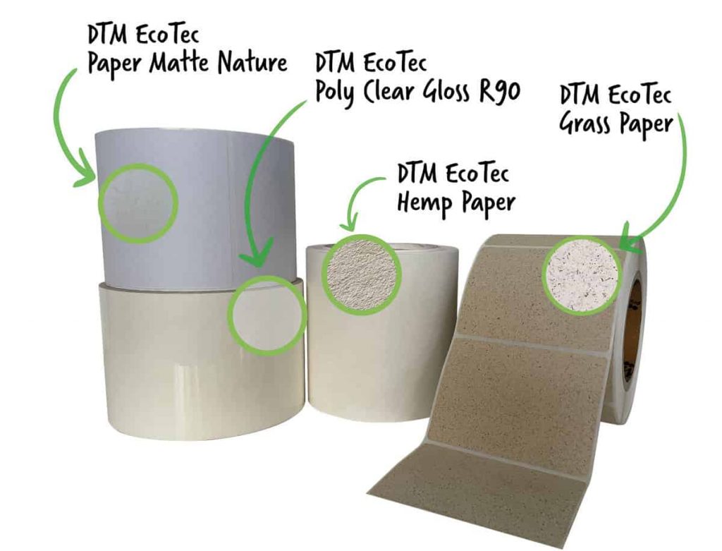 - DTM EcoTec Paper Matte Nature: This paper label is made from 100% recycled backing from used label rolls.