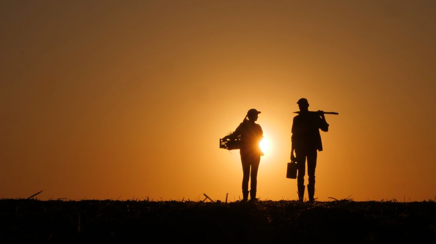 Silhouettes,Of,Two,Farmers,Man,And,Woman,In,A,Field