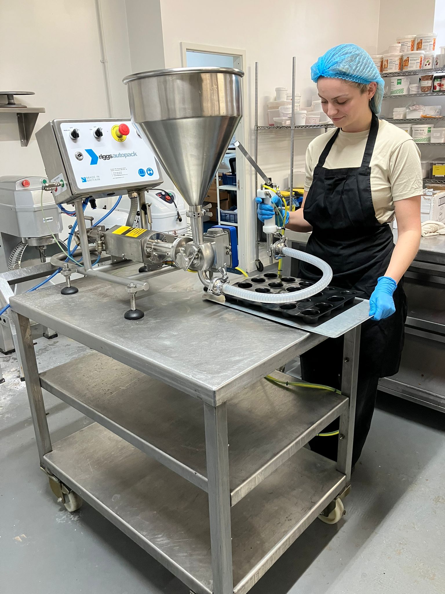 As production increased, they realized that meeting demand required finding a suitable semi-automatic depositor. Co-founder Stephen Thompson approached depositor manufacturer Riggs Autopack to discuss their needs.