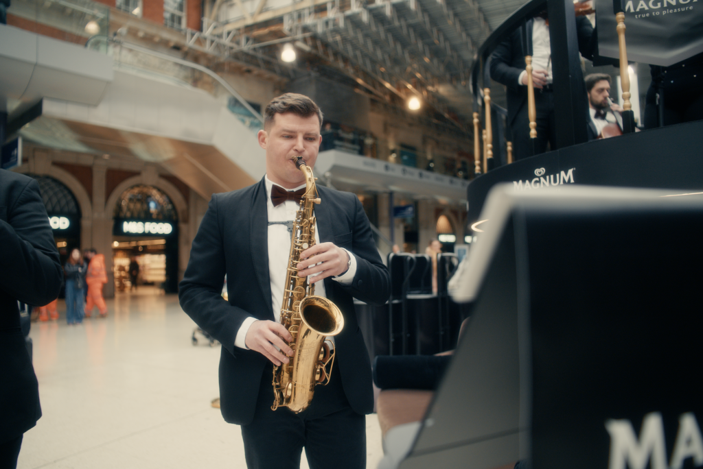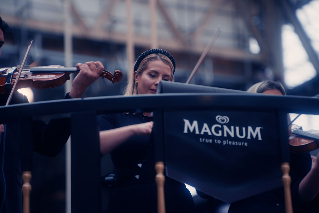 In each location, a 12-piece live orchestra performed on a custom Magnum Bandstand, serenading commuters as they received more than 80,000 free ice cream bars over four days. Velvet seating, elegant branding, and a vibrant atmosphere encouraged people to linger, take photos, and truly engage. It wasn’t just about giving away product – it was about reminding people that Magnum is an indulgence worth choosing.